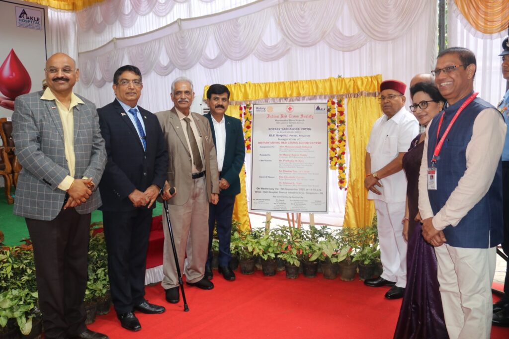 The Indian Red Cross Society, Karnataka State Branch has started a new Blood Centre at Ravi Kirloskar Hospital under the name Rotary Udyog Red Cross Blood Bank.