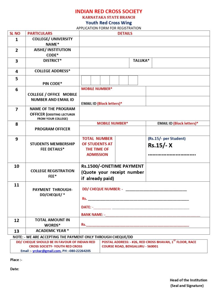- Rs.15/- shall be credited to the State Branch of IRCS, KSB, Bengaluru. Out of Rs.15/- receivable by the IRCS, KSB, Rs.5/- per student shall be remitted to each University/Directorate for meeting the expenses on payment of honorarium etc., and conducting annual meeting of YRC Programme Officers for planning and review of Youth Red Cross activities.